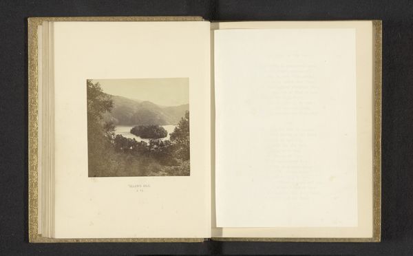 Curator: E. Soule captured "Gezicht op het Lac des Quinconces," sometime between 1860 and 1880. This gelatin-silver print is a stereoscopic view, inviting viewers into a landscape seemingly suspended between water and sky. Editor: My first impression is one of profound tranquility. The muted tones, almost monochromatic, create a scene that's both calming and a little eerie. The building submerged in water, with that cluster of trees around it, evokes a sense of melancholy. Curator: Considering it’s a gelatin-silver print, we have to look at the chemistry involved – how the light interacts with the silver halides on the gelatin layer. This determined the tonal range achievable and speaks to the advancements in photographic processes making images like this accessible to a wider public. Furthermore, stereoscopic photography became incredibly popular for tourism, enabling a global audience to "visit" these places without actually being there. Editor: And what a scene to visit! The lake is acting almost like a mirror. It’s as if the submerged structure—could it be some sort of bathing house?—is both there and not there. The submerged house calls to mind stories of lost cities and drowned memories; what happened here, what’s this about. It’s interesting also to consider the symmetry—two hills balancing the two halves of the picture, creating this quiet space in between. Curator: Precisely, it documents how access to bathing changed society, not just for health but also for leisure and commerce. And look closely at how Soule framed the trees, especially on that central structure in the water. It invites analysis, that this choice served practical purposes during development, in terms of achieving an ideal composition in these early methods. This would require considerable expertise to process with specific materials and production values to present at this stage in photographic process. Editor: It's evocative of the ephemeral, a constant reminder of the passage of time, that nothing is permanent. I am left contemplating the building, a silent sentinel standing against time's relentless current. Curator: Indeed, viewing it through that materialist lens brings focus back to the processes through which this image has been produced to serve cultural and historical processes in Europe during this period. Editor: And those hidden and drowned stories it implies. Curator: A merging of those ideas together make for powerful results.