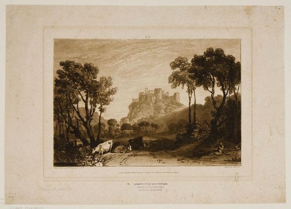 Curator: This is John Pye the Younger’s "Junction of the Greta and the Tees at Rokeby," currently held at the Harvard Art Museums. The way the light catches the water... it’s almost hypnotic. Editor: Hypnotic, yes, but also a little melancholic? The muted tones give it a sense of serene resignation, almost like a stage set for introspection. Curator: Perhaps. Pye seems to be capturing the picturesque, almost yearning for a simpler, harmonious relationship with nature. Note the careful rendering of the rocks and foliage, an almost scientific commitment to capturing every detail. Editor: True. And yet, that detail, that almost obsessive observation, feels… romantic. Not in a hearts-and-flowers way, but in the way it elevates nature to something sublime, something beyond our grasp. Curator: I agree. There’s a longing embedded in the very act of depiction. It's a reminder that even in observing, we are separate. Editor: And perhaps that separation is where the beauty lies. The very act of trying to capture this scene makes it so precious, even elusive.