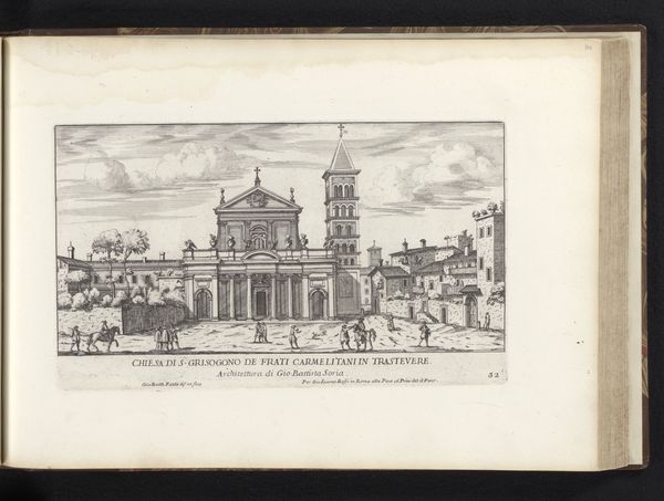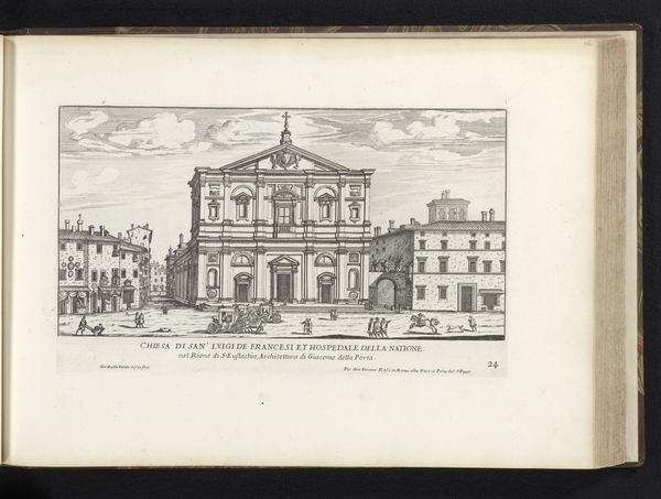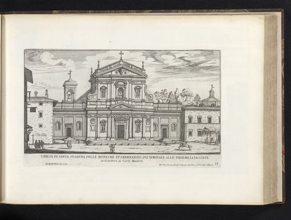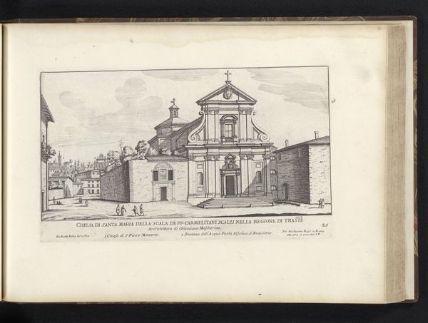 Editor: This engraving, “San Nicola da Tolentino te Rome,” by Giovanni Battista Falda, dates from 1669 to 1670. It's a detailed cityscape, but something about the rigid architectural lines feels almost…oppressive. How do you interpret this work? Curator: That’s a perceptive reaction. Beyond the immediate visual impression, consider how such meticulously rendered cityscapes served as tools of power. This isn't merely a record of a church; it's a statement about the Church’s dominance and influence within Rome’s socio-political fabric. The precise lines and ordered composition subtly reinforce an idea of control. What message do you think Falda was trying to convey to the masses? Editor: I suppose I hadn't considered that it could be about control rather than just documentation. The inscription emphasizes the church's location "between the Quirinal and Porta Salaria"... Was that positioning of significance? Curator: Absolutely! The Quirinal Palace was the seat of Papal power; Porta Salaria, an ancient gate and route in Rome. By highlighting this strategic placement, Falda reinforces the church's central role in both spiritual and civic life. It's a spatial assertion of power. But does this raise questions for you about marginalized perspectives, of the residents perhaps? Editor: Yes, that makes me think about what’s *not* shown here. Everyday life feels secondary to this grand statement of religious and political might. Is the grandeur intentional, to make you feel small in comparison? Curator: Precisely. These images also omit the complexities and struggles of the era. There’s a careful curation of the urban narrative – think about who benefits from that curated view. Editor: I see the engraving as something beyond just art: it's an intentional visual narrative that actively shaped perceptions of power and space in Rome. Curator: Exactly! It’s a reminder that art doesn’t exist in a vacuum, it lives, breathes and has real-world influence.