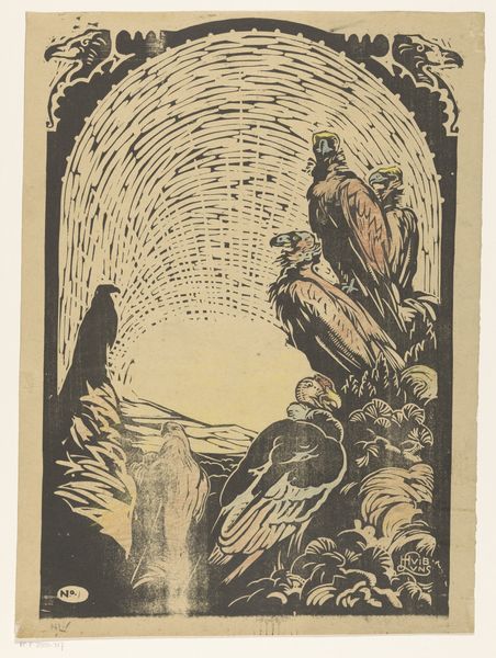 Theo van Hoytema made this colour lithograph, 'Two Ducks', in the Netherlands. Van Hoytema, like many artists of the late 19th century, was interested in Japonisme, the influence of Japanese art and design on Western art. In this period, the institutions of art and design were becoming more closely linked as part of a broader movement to bring art into everyday life. Here, we see his deep interest in graphic design, informed by naturalism. The black duck stands, alert and vocal; below, the white duck rests serenely, reflected in the water. This study of contrasting textures and patterns demonstrates an interest in nature, but also the aesthetic possibilities of printmaking itself. To learn more about Dutch printmaking, one could examine the archives of the various art schools and workshops which fostered its development during this period. By studying Van Hoytema’s sources, we can more fully appreciate the ways in which artists like him made use of both new reproductive technologies and existing cultural traditions.