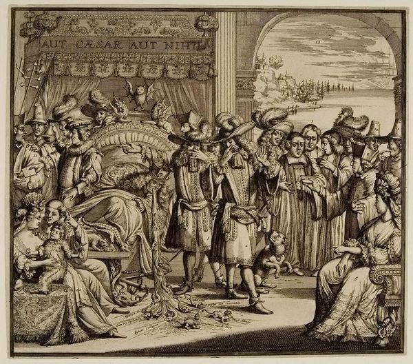 Curator: Let's examine "A Harlot's Progress, plate 6" by William Hogarth. Executed as a print using etching and engraving techniques, it depicts a complex scene within what appears to be a cramped interior. The distribution of figures draws immediate attention. Editor: My first impression? It's utter chaos. The tonal range creates this stark contrast, almost like stage lighting on a tragicomic performance. Curator: The composition directs the viewer's eye methodically, employing a receding plane. Observe how the linear perspective, converging towards the back, accentuates the sense of enclosure. There is no specific vanishing point, which heightens the tension, don't you agree? Editor: Definitely, this disruption serves to throw everything out of joint. The pallid skin tones and high, powdered wigs speak to me about the culture surrounding that time. It also has a great historical narrative—the end of our harlot! Curator: Note the visual motifs. We observe the rigid angles of the furniture and the contrast they establish in connection with the figures arranged within the overall mise-en-scène. And on a conceptual level, the visual rhythm of despair! Editor: It also encapsulates the realities and perils faced by women in Georgian society—and the stark inequalities of the time. Poverty and prostitution and gender roles all mixed into one dramatic print. Curator: The artist masterfully utilizes a linear approach with fine, almost calligraphic details to create definition. These delicate strokes delineate emotion in a way that sculpts emotional contours, which contributes to the artwork's dramatic tone. Editor: For me, the most affecting is the emotional honesty that William Hogarth displays in capturing raw grief; it resonates on a human level regardless of time and cultural differences. What do you think? Curator: In conclusion, a potent amalgamation of artistic craft, skillful engraving techniques, linear compositions, and well-organized forms contributes to the impact of William Hogarth's work here, giving form to the visual narrative within the frame. Editor: Yes. "A Harlot's Progress, plate 6" uses high-contrast monochrome visuals with a deep, thought-provoking statement that underscores its importance within both Georgian-era studies as well as historical investigations relating to social justice matters in modern discourse!