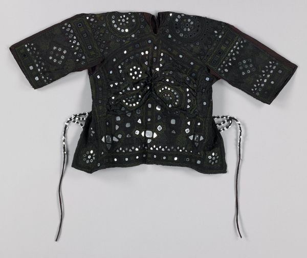 This baby’s jacket was made by a Dong artist, probably in China, out of silk. The pattern might seem purely decorative, but in many cultures textiles are key to understanding social structures. The process of making textiles can be very labor intensive, and the designs often carry symbolic meanings, signifying status or beliefs. We can tell it's from China by its style of dress; the jacket closes with a side fastening. The Dong are known for their skills in weaving and embroidery, and their textiles often feature complex geometric patterns like the diamond shapes we see here. In the absence of further information, we can still appreciate how the jacket reflects the ingenuity and cultural values of its makers. Looking at examples of Dong weaving and learning about their cultural traditions would help us understand the role of textiles in their society. Considering how clothing functions as a signifier of identity and belonging, this object can tell us more than we might think.