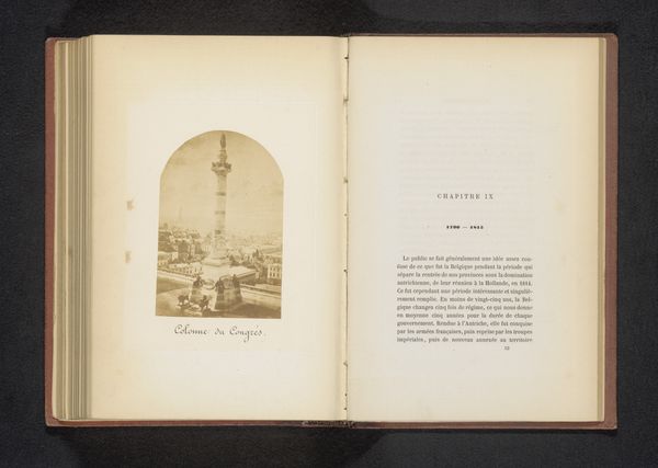 Editor: Here we see an albumen print dating from before 1860 by Joseph Maes, titled "Gezicht op het Belfort van Brugge," depicting the Bruges Belfry. I find the image striking because it captures a moment in the city's history through the lens of early photography. What stands out to you? Curator: This albumen print gives us a window into understanding the evolving concept of citizenship and communal identity in 19th century Bruges. This was a period of massive change, influenced by new political ideals of freedom. It makes me think: What did the belfry symbolize to the people of Bruges at this time? Editor: So, it's more than just a building? Curator: Absolutely. As a focal point of the cityscape, this building may have served as a meeting point for people from diverse backgrounds. These people may have united around common interests such as craftmanship, the construction of religious movements or social resistance. I’m wondering if this image alludes to larger trends and political ideals regarding urbanization. What are your thoughts? Editor: That’s really interesting! I never would have considered this as being related to political identity. It makes me think about how physical spaces shape our perception of civic responsibility. Curator: Exactly. And how art captures and maybe even influences it. Reflecting on it, this piece highlights how photography can document architectural spaces but also reflect the intangible values of a society. Editor: I’m leaving with a much broader appreciation now!