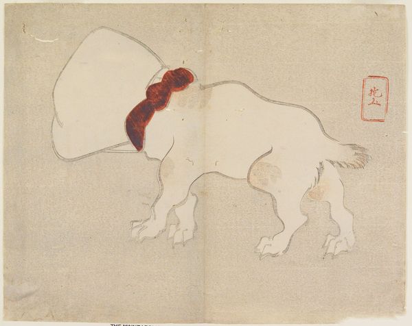 Mihata Jôryû rendered this Reclining Bull in ink and color on paper. The stark contrast between the bull's dark coat and the light background immediately draws the eye. The animal’s form, filling much of the pictorial space, presents a powerful, almost imposing figure, despite its reclining posture. Jôryû’s work balances detailed realism with elements of abstraction. The meticulous rendering of the rope halter around the bull’s head contrasts with the more generalized treatment of the body, where brushstrokes suggest form rather than define it precisely. This contrast introduces a semiotic tension: the rope, a symbol of control, against the raw, untamed power implied by the bull's massive form. The composition invites us to consider themes of nature versus culture, freedom versus constraint. The bull, an emblem of strength and virility, is here subdued, resting. This prompts us to question fixed meanings associated with such symbols, opening a dialogue on the dynamic interplay between inherent characteristics and imposed limitations.