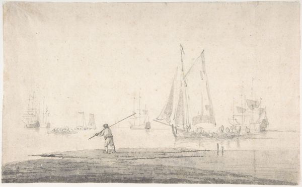 Cornelis Ouboter van der Grient made this print, Fishermen Pulling in Net on a Boat, using etching techniques. It's a delicate piece on paper, far removed from the hard work it portrays. The magic of etching lies in how the artist coaxes an image from a metal plate through acid. Lines are drawn on a waxy surface, then the plate is submerged in acid, biting away at the exposed metal to create the drawing. The plate is then inked and printed, transferring the image to paper. Notice how the etched lines define the figures of the fishermen, their boat, and the distant ships. Here, the contrast between the labor-intensive process of etching and the scene depicted invites reflection on the lives of the working class, as well as the burgeoning market for images in the 19th century. The print transforms the labor of fishermen into a commodity for consumption, prompting us to consider the social and economic context of both the image and the depicted scene. We see the artist’s labor reflected in the final product, as well as the fisherman’s labor reflected in the image.