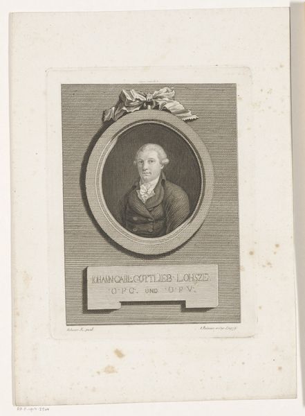 Johann Friedrich Bause created this print, "Portret van Christian Ludwig von Hagedorn," sometime in the late 18th century. This portrait offers a glimpse into the world of influential figures during the Enlightenment. Christian Ludwig von Hagedorn was a significant art theorist and director of the Dresden Art Academy, which was a position of considerable cultural power. The portrait reflects the conventions of its time, presenting Hagedorn in a dignified manner, which was typical for portraits of elites. But it also hints at the complex relationship between patronage, artistic production, and the construction of social status. The fact that his gaze is slightly averted, adds a layer of complexity to the portrayal, inviting us to consider his inner thoughts and motivations. Consider how portraits like this one played a role in shaping societal values and power structures. Think about the ways in which such images contributed to the construction of identity and the perpetuation of class distinctions.