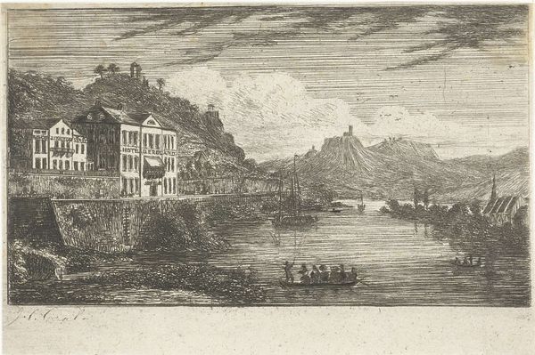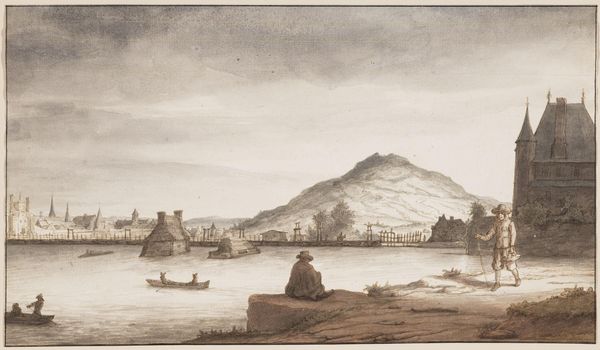Editor: This is "General View of the City and Port of Catane" by Pietro Antonio Martini. It's a print showing a bustling port city with a rather ominous volcano looming in the background. It feels a bit like a stage set, doesn't it? What do you make of it? Curator: Absolutely, it does have that theatrical air! For me, it speaks to the precariousness of life. The beautiful city, full of activity, juxtaposed with the ever-present threat of Etna. It's a reminder that nature can be both beautiful and destructive, can't it? Do you feel that tension too? Editor: I do. It's like a memento mori, but for a city! Curator: Exactly! A landscape imbued with a human narrative, a silent drama ready to unfold. That's what draws me in. It whispers, doesn't it? Editor: It certainly does. I will definitely look at other landscapes differently now.