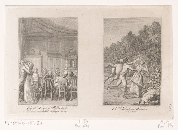 Daniel Nikolaus Chodowiecki made this print of Friedrich Wilhelm III and his family using etching, a printmaking technique with a long history. The image is achieved by drawing into a wax-covered metal plate with a sharp needle. Acid then bites into the exposed lines, which are later inked and printed. What is interesting here is the way the etched line varies in depth and density, creating tone and texture. Look closely, and you can see the fineness of the lines used to define the figures' clothing, contrasting with the more roughly worked areas of shadow. Etching was a relatively democratic medium in the 18th century, allowing for the wide distribution of images. Here, it captures a moment of dynastic transition, but also gives us insight into the fashions, interior décor, and social rituals of the time. The very act of etching – a process involving skilled labor and mechanical reproduction – mirrors the social and political transformations that were underway, as aristocratic power was gradually being supplanted by new forms of production and consumption. It’s a reminder that art is always embedded in a web of material processes and social relations.