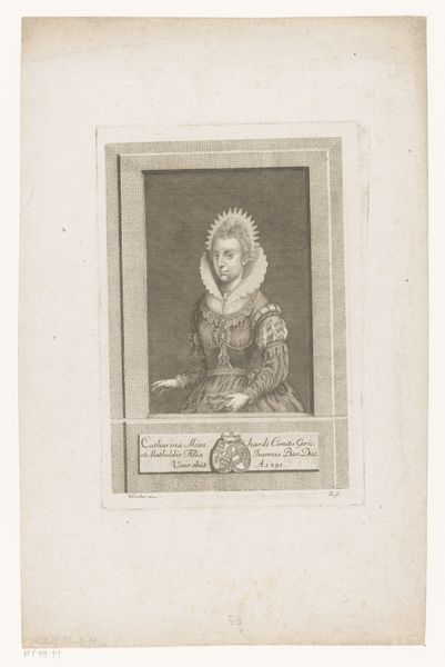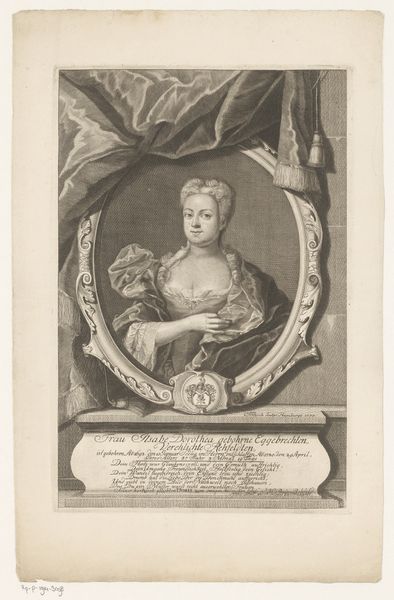 Joseph Anton Zimmermann created this engraving of Theresia Emanuela of Bavaria sometime in the 18th century. Zimmermann, a German artist, here depicts Theresia as a young woman of status and wealth. During this period, portraiture played a critical role in defining social hierarchies. The sitter's clothing, pose, and setting were all carefully constructed to convey messages about their identity, family, and social standing. Here, Theresia's elaborate gown and refined bearing speak to her aristocratic status, while the architectural backdrop alludes to the palaces and estates that were typical of her class. This image could have been commissioned by the sitter to demonstrate their status in society. The engraver or printmaker played a vital role in disseminating images and information throughout society. To fully understand this image, a social historian might consult resources such as genealogical records, fashion history, and studies of courtly life in 18th-century Europe.