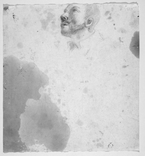 Editor: This photograph, "Lyonel Feininger" by Andreas Feininger, uses stark contrasts. The subject's silhouette is striking against the bright backdrop. What visual elements stand out to you in this composition? Curator: The photographer's manipulation of light and shadow is paramount. Note how the stark juxtaposition creates a graphic quality, reducing the subject to essential forms. The negative space becomes as significant as the figure itself, shaping our perception. What effect do you think the artist was trying to achieve? Editor: Perhaps a sense of mystery or anonymity? The high contrast is definitely eye-catching. I also wonder about the writings on the side of the image. Curator: Indeed, the textual additions offer another layer. The composition's balance of dark and light invites us to ponder the relationship between visibility and obscurity. The photograph's inherent flatness, devoid of tonal gradations, adds to its abstract quality. I find myself pondering the subject's gaze, and how it is ultimately obscured. Editor: I see how you decode the image's visual structure. Thanks for highlighting the interplay of light and shadow and the writings on the side.