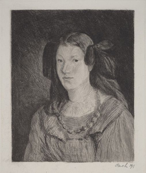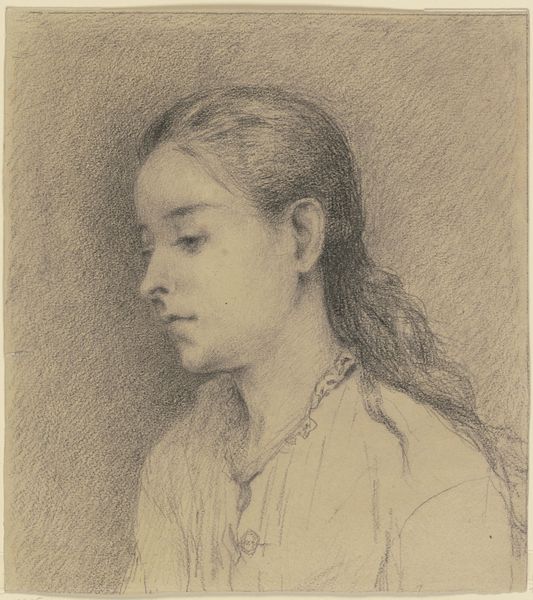 Curator: Here we have Mark Gertler’s pencil drawing, "Sketch for ‘The Servant Girl’", now part of the Tate collection. Editor: The texture! The simple lines really capture a sense of weariness and quiet dignity in her posture. Curator: Absolutely. Consider the social context. Gertler, the son of Jewish immigrants, was deeply aware of class divisions. This work invites us to consider the lives of domestic workers, their labor, and their visibility, or lack thereof, in Edwardian society. Editor: The very act of sketching emphasizes the material realities—the graphite on paper, the artist's hand, the sitter's stillness as labor. It's a study in quiet labor and material presence. Curator: It makes you question the power dynamics inherent in portraiture itself. Whose gaze are we adopting, and what does it mean to represent someone from a different social stratum? Editor: I appreciate how this sketch brings the labor involved in both the making and the subject of the work to the surface. Curator: Indeed, there is much to reflect on regarding labor, representation, and social structure here.