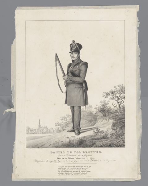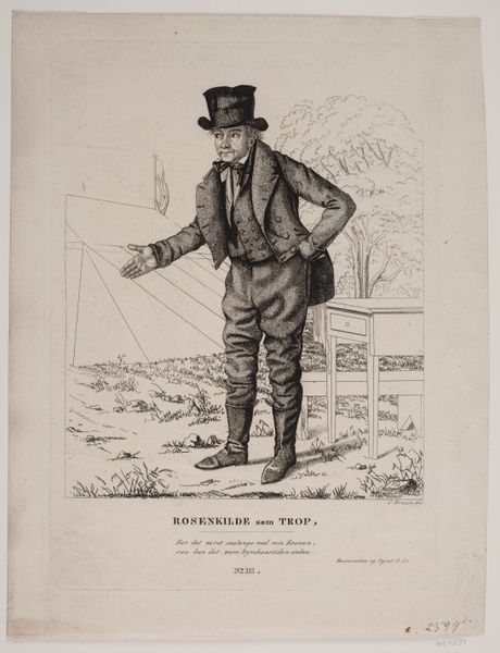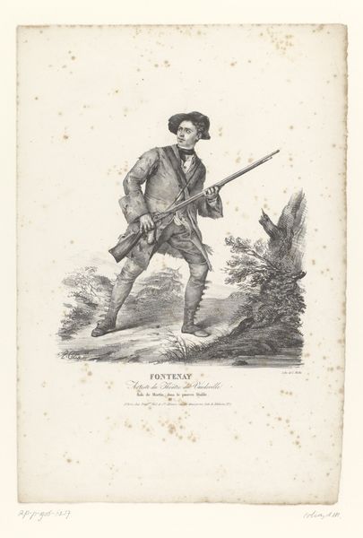 Alexandre-Marie Colin made this portrait of Raffile as Michau in the drama Coelina. The artwork depicts a man dressed in what appears to be traditional or folk attire, standing against a backdrop of rural scenery. This image creates meaning through its references to regional identity and theatrical performance. The choice to depict the subject in costume from a specific drama suggests a commentary on the construction of identity through art and performance. Made in France, the artwork reflects the period's interest in romanticizing rural life. It possibly engages with the then-current discourse around regionalism and national identity. To understand this portrait better, one could research the drama "Coelina" itself, the social status of actors, and the cultural significance of regional costumes in 19th-century France. Such research would further clarify the intricate ways in which art reflects and shapes its social context.