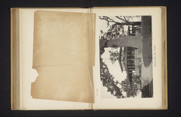Curator: Here we see a page opened from a sketchbook presenting "Gezicht op een villa te Harrow", or "View of a villa in Harrow," dating from before 1889, rendered in ink on paper. Editor: Immediately, I'm struck by its somber mood. The dark ink against the aged paper conjures a feeling of a time long past. It's architectural rendering, but feels melancholic. Curator: Yes, the sepia tones and somewhat stark lines speak of an older world. Consider the symbolism of a villa; historically a signifier of power, wealth, and retreat. Yet here, it appears almost isolated. Does it represent something specific about the owner, perhaps even a loss of control? Editor: Villas often signify an escape from civic duties or oversight. Who did it serve and what are the implications of memorializing an escape like this through art? The isolation you point out is a poignant one, because it isn't just a house but something the represented more widely—the role of wealthy families in the pre-industrial countryside. Curator: Interesting observation. Look closely at the drawing technique though. The precision is admirable but impersonal—almost clinical. Note the delicate shading creating a textured sense of the building, while also reminding us of inevitable decay through entropy and mortality. Editor: Exactly, and the fact that it’s a drawing from a sketchbook places it within a specific power dynamic. The act of sketching makes a claim on the subject; what meaning do we attribute to this particular building by immortalizing in this medium? I would go so far as to say the artist reveals their bias from the vantage of this position. Curator: It also reveals what interested the artist personally—they took care to make a note about this scene. Sketchbooks tend to invite contemplation, and also mark where the hand may choose to dwell a little bit longer. And although technically skilled, the medium itself retains a degree of informality which can be interesting to dwell upon in our interpretations. Editor: Perhaps that's why I find it so haunting, a juxtaposition of control and artistic intimacy. The drawing invites more than a technical appreciation, because there's a dialogue between architecture, individual experience, and the societal narratives that encompass this piece. Curator: Ultimately, this image prompts questions about social hierarchy and wealth. Editor: Absolutely, it invites to examine its deeper meanings that can shed light on societal inequalities and perhaps challenge the romanticism around a certain image of architectural space and representation.