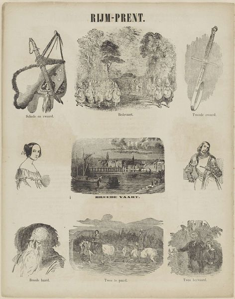 This print by W.J. Kat presents various scenes, each a tableau rich with cultural echoes. Consider the recurring motif of the enclosed female figure, prominent in multiple vignettes. From a maiden in a tower beneath a bell to a woman within domestic interiors, these settings frame the female figure as both protected and confined. This resonates with the ancient Greek myths of Danaë, imprisoned, yet still touched by divine influence. Similarly, the women in these scenes evoke a sense of anticipation and expectation; a waiting for fate or rescue. We see this motif re-emerge throughout art history, each time adapted to reflect contemporary social and psychological narratives. These images tap into a collective memory of female roles and the subconscious desires for both security and liberation. The emotional weight of these scenes lies in their depiction of intense psychological states, engaging viewers on a deep, subconscious level. Observe how symbols reappear across time, evolving to mirror societal shifts and enduring human emotions.