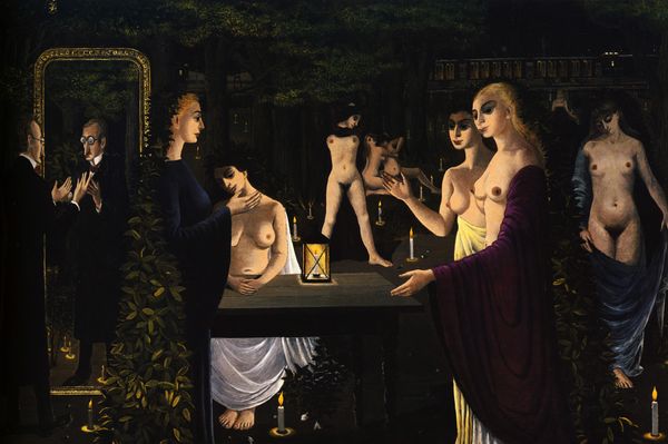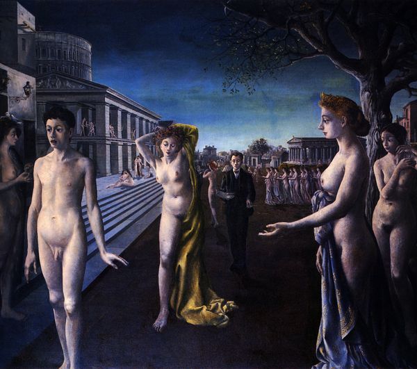 Paul Delvaux painted "Grise City" sometime in the 20th century, using oil paint to craft a world both familiar and deeply strange. It's hard to pin down the process here, but I'd wager Delvaux built this world up slowly, layer by layer. There’s a sense of smoothness to the surfaces, almost like a dreamscape rendered in enamel. Look closely at the woman on the left, the way the light glances off the folds of her drapery. It’s an odd detail, that rippling cloth. It doesn't feel quite connected to the space around her, more like a phantom of classical sculpture. Then, there's the hard-edged architecture, so precise it’s almost airless. The whole painting feels suspended between clarity and obfuscation, like a half-remembered myth. Delvaux reminds me a little of de Chirico, but with a softer touch, maybe a bit more humanity. But, like all good art, this painting resists easy answers, leaving us instead with questions.