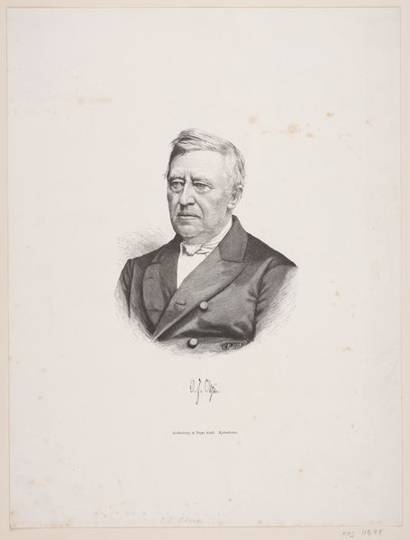 Curator: Before us is a portrait from 1882, identified as "Portret van Adrien Joseph Verhoeven-Ball," created by Jean Baptiste Pierre Michiels. Editor: There’s a striking gentleness to this portrait. Despite the formality of his dress, the soft pencil work lends him a certain approachability. Curator: Portraits during this period often served as statements of social standing, publicly displaying the sitter’s identity and perhaps also promoting that artist. The very fact that this work hangs in the Rijksmuseum speaks volumes about the cultural significance afforded such depictions of notable figures in the late 19th century. Editor: I see symbols of stability here: the well-groomed beard representing wisdom, the dark suit and bow tie conveying respectability, all framed within that oval vignette suggestive of looking into a cherished memento, almost a memory of an idealized individual. It speaks of an enduring legacy. Curator: Absolutely, it would have been perceived that way at the time. And Michiels was known to cater to such social norms; his art had to be relevant to gain the attention of such personalities in the bourgeoisie. Editor: It really brings out how we construct our visual legacy. Looking at this, I keep wondering: how would *I* want to be represented in a portrait? Curator: A powerful thought! This piece makes one consider not only Verhoeven-Ball's position in society at the time but how artistic conventions aided in producing such statements of reputation. The cultural influence of Michiels as well in making pieces that adhere to the societal taste. Editor: I like how it reminds us that images aren't just depictions; they're constructed messages meant to linger in the cultural memory. Curator: Precisely! This glimpse into 1882 serves to broaden our perspective of the world around us even now.