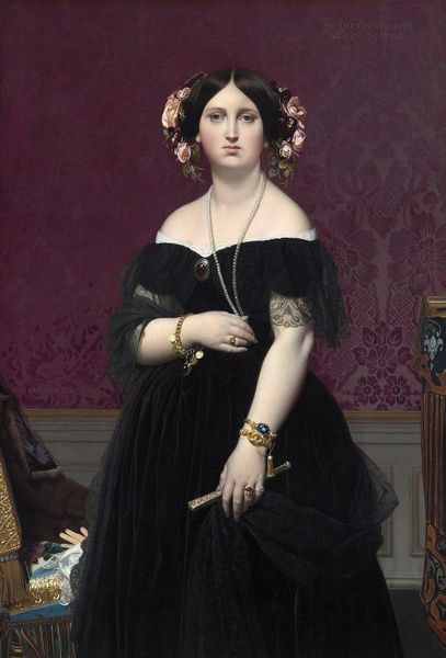 Curator: Thomas Francis Dicksee, the artist behind this work, presents a figure titled "Amy Robsart" executed with oil paints and demonstrates clear leanings towards Romanticism within the academic tradition. Editor: My first impression is one of quiet contemplation. The sitter’s gaze holds a delicate balance of vulnerability and poise. It’s interesting how such meticulous detailing softens into an overall effect of subdued elegance. Curator: The details certainly speak to the material concerns and economic realities that influenced its creation. Consider the lace collar, the pearls - clearly, the sitter had access to specific goods produced and distributed within a vast trading network. The textures here, replicated with layers of pigment, highlight an artisanal mastery prized by the period's academic structures. Editor: And what about Amy Robsart herself? She’s not just a figure clad in valuable textiles. Her story is rooted in the gender politics of the Tudor era. The tragic circumstances of her death – possibly accidental, possibly murder orchestrated by her husband, Robert Dudley, a favorite of Queen Elizabeth – cast a shadow on her portrayal here, and indeed over our interpretation. Is Dicksee offering a glimpse into a woman trapped within a gilded cage, her fate inextricably linked to the powerful men in her life? Curator: That’s a valid perspective, of course, but let's think practically about the making of it. How the artist chose those particular brushes for specific details. Think about the ratios in which the pigment has been mixed to portray the exact translucence and iridescence of pearls… Editor: But if we strip the painting bare of social context and historical weight, what remains? Can we separate Amy Robsart the object, made up of fabric and pearl, from the story and political tensions she represented? Shouldn't her position as a pawn within those power dynamics be foregrounded as a primary source of the art piece's pathos? Curator: It’s undeniably thought-provoking how these oil paints can perpetuate a narrative steeped in privilege, labor division, and commerce, and then centuries later we analyze those very production processes within a different value structure. Editor: Exactly. Dicksee’s "Amy Robsart," is more than just paint on canvas; it's a portal into the intersection of gender, power, and material culture.