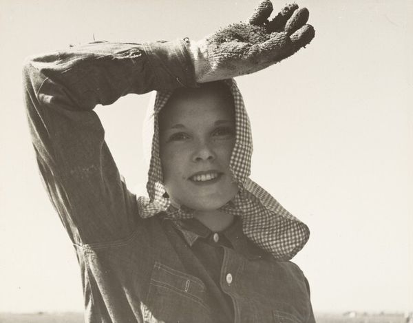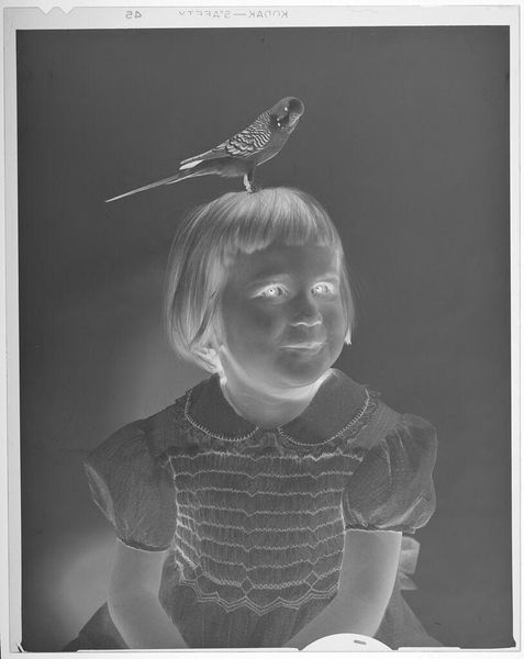 This small, anonymous photograph captures a girl with a bird perched on her head. The image may at first appear to be simply a candid shot of childhood. However, without any information about the context in which this photograph was taken, it is difficult to interpret its meaning or purpose. Looking at the girl's clothing and the sparse landscape, one might place the photograph in rural America during the Great Depression. In this context, the image could be seen as a representation of resilience and adaptation in the face of hardship. The bird becomes a symbol of hope and freedom, even in a time of economic hardship. The girl's direct gaze and confident stance add to this sense of determination. The Library of Congress's collection of Farm Security Administration photographs would provide further insights into the lives of rural Americans during this period, and help us understand the social conditions that shaped this image. Ultimately, the meaning of this photograph remains open to interpretation, highlighting the complex relationship between art, history, and social context.