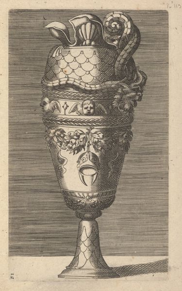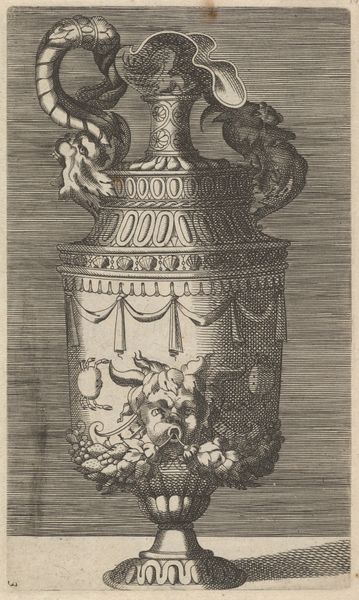 This print of a vase with garlands was made around 1769, and it is interesting to consider the labor and skill involved in both its making, and the making of the vase it depicts. The print itself is a product of engraving, a meticulous process that involves carving lines into a metal plate to hold ink and create the image. This technique allowed for the mass production of designs, fueling consumer culture. Consider also the vase, probably made of ceramic, a material requiring precise forming and firing. Notice the garlands and ornate details, alluding to the skilled hands that would have formed them, in clay, wax, or plaster. The vase, as depicted, speaks to a world of skillful making, a kind of labor very different from the reproductive work of the printmaker.