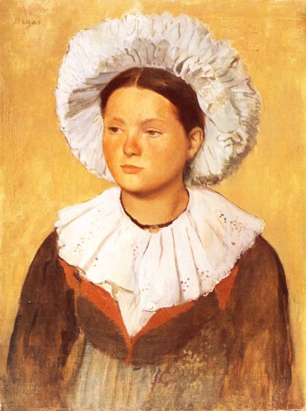 Pietro Perugino painted this self-portrait in fresco within the Collegio del Cambio in Perugia. The composition centers on Perugino's face, framed by a red cap and dark tunic against a muted background. Observe how Perugino employs a somber palette to construct a sense of restrained dignity, typical of Renaissance portraiture. The geometry of the head, with its symmetrical and almost stoic expression, is framed by softer, wavy lines of the hair, which adds a layer of complexity to the otherwise formal presentation. This reflects the Renaissance's broader interest in balancing classical ideals of order with humanist concerns of individuality. Consider how the formal elements—the balance of line and color, symmetry, and the play of light—function as signs of an underlying structure of meaning. Perugino's self-representation is not merely a likeness but a carefully constructed statement about his status and artistic philosophy. It is an invitation to reflect on how artists use form to engage with contemporary notions of self and society.