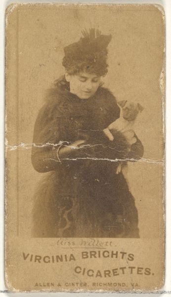 This is a promotional card for Allen & Ginter's Little Beauties Cigarettes, featuring actress Rose Coghlan. The sepia photograph is encased within a rigidly bordered card, creating a tight, almost claustrophobic framing. The texture of the card and the photograph itself have a granular quality. Light and shadow play across Coghlan's face, adding depth and a somewhat theatrical quality to her expression. The composition divides into distinct zones: the textured border, the portrait, and the inscription of her name. This division underscores the artwork's commercial function. The image flattens the actress into a sign, a marker of status, and desirability, to be consumed like the cigarettes it advertises. Yet, this seemingly simple construction complicates itself by becoming a sign within a sign. The effect is a layering of meaning that destabilizes the directness of advertising. Ultimately, the card functions as a complex signifier, embodying the cultural and economic forces at play during its time, prompting us to reconsider the transient nature of fame and value.
