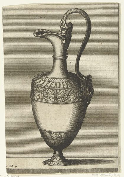 Wenceslaus Hollar etched this jug with arabesques during the 17th century. The arabesques that adorn the base and lid are of particular interest; these are not mere surface decorations, but rather a deep-rooted symbolic language. These motifs, with their intertwining lines and organic forms, echo patterns found in ancient Roman frescoes and Islamic art. You see similar designs in the Renaissance era, revealing a lineage of visual forms that have journeyed across cultures and centuries. The fluid, dynamic nature of these arabesques speaks to a deeper desire for harmony and connection, a visual expression of the interconnectedness of all things. Consider how these patterns engage us on a primal level, stirring emotions and memories buried deep within our collective psyche. This jug is not merely an object but a vessel, filled with cultural memory.