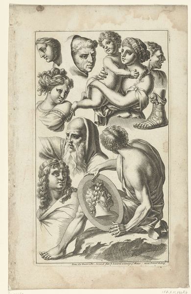 Curator: This intaglio print, simply called "The Ecstasy of Mary Magdalene," dates to around 1503. While the artist remains unknown, its home is here at the Rijksmuseum. Editor: The sharp contrast and the intense expressions of the figures give it an unsettling, almost claustrophobic feel, don’t you think? It’s fascinating and slightly disturbing all at once. Curator: Disturbing in what way? This work emerges during a period obsessed with female saints—especially those, like Mary Magdalene, who undergo dramatic transformations and public repentance. It catered to a very specific piety. Editor: Perhaps "unsettling" wasn’t the right word. Look at her body, idealized and nude, but also exposed, vulnerable, right? Placed among these adoring but slightly ambiguous figures – she lacks agency. Her experience, this ecstasy, seems dictated by outside forces. Curator: That interpretation definitely speaks to contemporary concerns. During the Northern Renaissance, such depictions sought to convey spiritual elevation through symbolic imagery. The act of being surrounded by angels signals her importance within the religious framework. Editor: But does it though? Or does it reflect a very gendered dynamic? I’m wondering what it meant to portray female religious ecstasy in such a visually vulnerable way, and the kind of messages about female bodies and spirituality it projected in its time. Is she truly elevated, or is this image simply reinforcing existing power dynamics by portraying the female experience in a highly sexualized way? Curator: We can't impose contemporary views onto 16th-century perceptions, entirely, of course. The artist likely intended a portrait of spiritual purification through divine encounter. It spoke to prevailing religious themes. The print's distribution through the church would bolster that narrative. Editor: Absolutely, but engaging with these artworks requires unpacking those complex layers. It's more than aesthetics or even theology; it's the cultural narrative that the image is upholding – often unconsciously – about gender and power, and in this instance female sexuality in a specific setting. Curator: It is that exact tension, I feel, between historical intent and contemporary critique that keeps these old artworks feeling perennially fresh. Editor: It certainly forces us to continually question the legacy and visual culture inherited across generations.