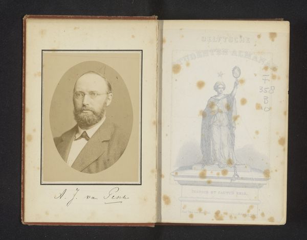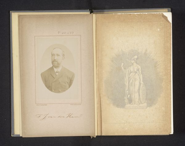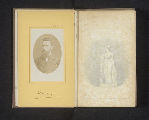 This is a photograph of Pieter Hendrik Schoute, a professor at Groningen University, created by Friedrich Julius von Kolkow. The photograph is part of an album, and the facing page shows an image of a classical sculpture. In the Netherlands during the late 19th century, the portrait photograph was becoming a standard way to commemorate public figures. The clean-shaven image and formal suit speak to his status as an academic and public servant. The sculpture on the facing page is a clue, perhaps, that the sitter wanted to be seen as a man of classical learning. Historical images like this offer a glimpse into the visual culture of the past. They provide valuable resources for understanding social values and institutional practices. The image as a whole speaks to the status of academics in Dutch society at the time, and the norms through which they presented themselves.