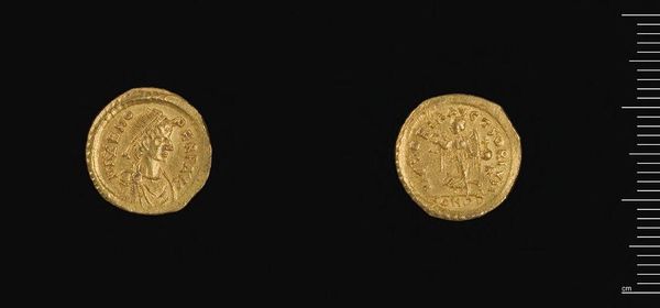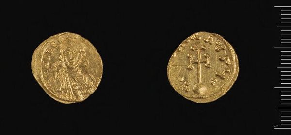 Editor: Here we have the semis of Heraclius by Abd-al-Malik, a small gold coin. The wear and tear really show its age and journey through different hands. As a material object, what can it tell us about its time? Curator: It speaks volumes! Look at the gold itself. Where did it come from? Who mined it? And consider the minting process—the labor, the tools, the technology. This coin represents power, certainly, but also a vast network of production and consumption. Editor: So, more than just currency, it’s a record of labor and resources? Curator: Precisely. The design, initially imitating Byzantine coinage, then evolving with Arabic script, shows a shift in power and cultural influence reflected in material culture. It’s a potent symbol of changing economies. Editor: It’s fascinating to consider something so small representing such complex systems. Curator: Absolutely. Examining the materiality allows us to question how art and craft intersect with labor and economic shifts.