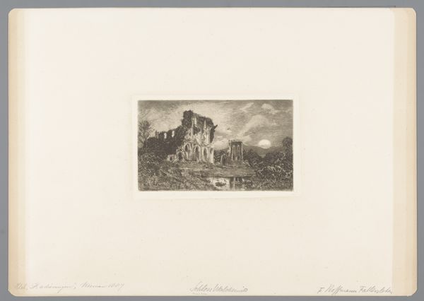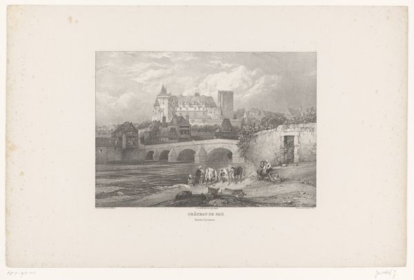 Théodore Fourmois’ lithograph captures a view of the Franchimont castle ruins. Dominating the landscape, these ruins are more than stone; they are symbols of time’s passage and the transience of power. Notice how the castle, once a stronghold, is now a ruin, a motif that echoes throughout art history from ancient Roman ruins to Romantic landscapes. These crumbling structures often evoke feelings of melancholy, reminding us of the inevitable decay of human creations. This feeling is tied to our collective memory of loss and change. Consider, too, how such ruins appear in paintings by Caspar David Friedrich, also set against vast skies. The Romantic era dwelled on ruins as symbols of human insignificance in the face of nature's grandeur. This preoccupation with ruins is not merely aesthetic; it taps into deep-seated anxieties about mortality and the ephemeral nature of existence. This image engages us on a subconscious level, prompting contemplation about the cyclical nature of history, where empires rise and fall, leaving behind only fragments.