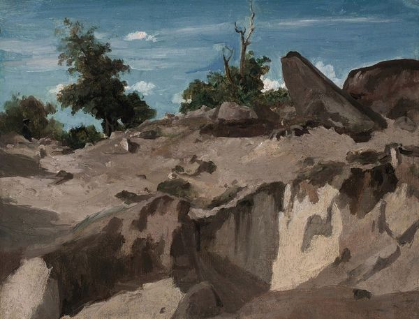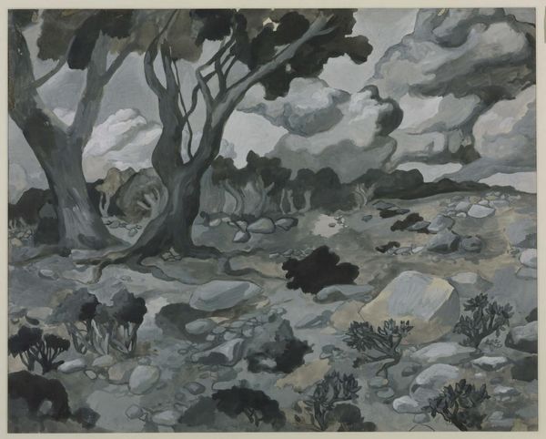 Curator: Here we have Joan González's "Landscape Known As 'The Iron Gate'." González, who lived from 1868 to 1908, offers us a glimpse into a landscape fraught with unseen boundaries. Editor: It feels like twilight, doesn't it? Somber and still. The palette is restrained, almost melancholic. I wonder what's beyond that gate. Curator: Considering the period, and the socio-political climate of the time, the 'Iron Gate' could symbolize limitations placed on individuals, particularly concerning freedom of expression, especially for Catalonian artists. Editor: Yes, perhaps. Or maybe it's just a gate! But I do get a sense of something being held back. The way the colors are muted, the heavy, shadowed foreground...it whispers of secrets. Curator: The materiality heightens the tension, too. The brushstrokes are deliberate, laden with emotion, perhaps mirroring the artist's internal state, and the social constraints of the era. Editor: You know, looking at it now, I see a stubborn beauty, too. It’s quiet, but insistent. Curator: I think that’s a poignant observation to end on. Editor: Indeed, a landscape that speaks volumes in whispers.