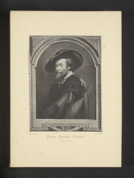 Johann Gerard Huck produced this self-portrait in 1777, using the technique of mezzotint. The image presents a copy of a self-portrait of Peter Paul Rubens, the famous Flemish Baroque painter from the previous century. In Huck’s time, academies of art played an important role in shaping artistic taste. They promoted the idea that art should be based on the study of classical models and the work of great masters from the past. This copy can be understood as a statement about the importance of tradition and the value of emulating artistic genius. By reproducing Rubens's image, Huck aligns himself with a lineage of artistic excellence, signaling his ambition and awareness of art history. The inscription suggests the location of the original painting, and the names of people involved in the production of this print. To understand the full significance of this image, we can research the history of art academies in 18th-century Europe, and learn more about the role of prints in disseminating artistic ideas.