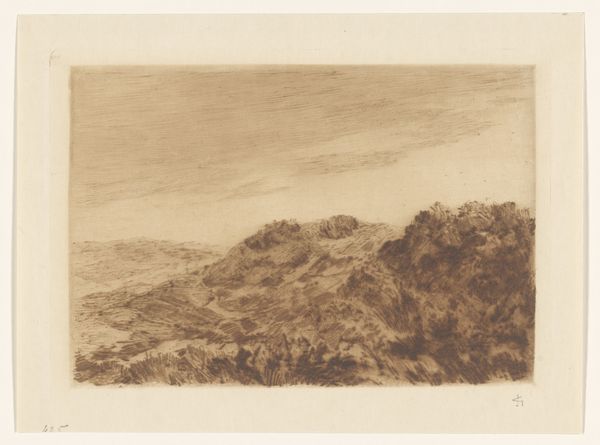Carl Bloch made this small etching, called "Bosrand langs water," in Denmark sometime in the mid-19th century. It offers us a view of a beachside scene. The image is striking for its combination of realism and romanticism, typical of the period. The bare tree on the right and the muted tones evoke a sense of quiet melancholy, a mood very much in keeping with the dominant artistic trends of the time. But look closer, and you'll notice the detailed rendering of the landscape. Denmark in the 19th century was undergoing significant social and political changes, and art was often used to reflect and comment on these transformations. Bloch was associated with the Royal Danish Academy of Fine Arts. His work, and its reception, were shaped by the artistic institutions of his time. Understanding the context in which art is created—the social conditions, the artistic institutions, and the political climate—enriches our appreciation. Further research into Danish art and history from this period would undoubtedly shed more light on the meaning and significance of this evocative image.