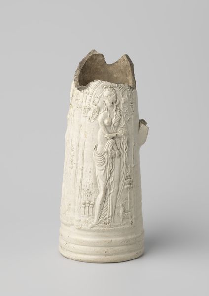 Here is an ivory chess piece, the King, crafted by Elkington & Co. Observe the composition of the chess piece. The king is presented in a seated position, holding a sword, with figures of soldiers standing behind him, their faces appearing along the top edge. The piece is characterized by its compact form and intricate carving. The artist has skillfully rendered the details of the figures, including their clothing and facial features, within the limited space. Consider how the artist uses the material qualities of ivory. Its color and texture contribute to the piece's visual appeal. The close carving of the ivory introduces depth and complexity, giving shape to a hierarchical narrative in the game of chess. Notice how the King is the most prominent figure while the soldiers are minimized as background forms, suggesting their secondary but crucial function in matters of war. Such formal choices emphasize not just the aesthetic but also the intellectual play inherent in chess, where strategy and power are constantly negotiated.