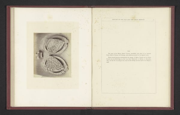 This image shows a page from an unknown book depicting a shield with heraldic symbols of William I and his wife on the Trent Bridge in Nottingham. Although the date of production is unknown, we can consider the visual codes present and what they might tell us about the social and cultural context. Heraldry carries significant cultural and historical weight, particularly in societies with aristocratic traditions. Coats of arms were granted to individuals, families, or institutions, signifying their status, lineage, and affiliations. The display of these arms on public structures, such as the Trent Bridge, was not merely decorative. It served to reinforce existing social hierarchies and power structures. Understanding the social role of this image requires an investigation into the history of Nottingham, its aristocracy, and the historical context surrounding the construction or renovation of the Trent Bridge. Scholarly articles, local historical archives, and genealogical databases can offer insights into the families associated with these arms and the specific historical circumstances that led to their display on the bridge. The interpretation of art is contingent on social and institutional context.