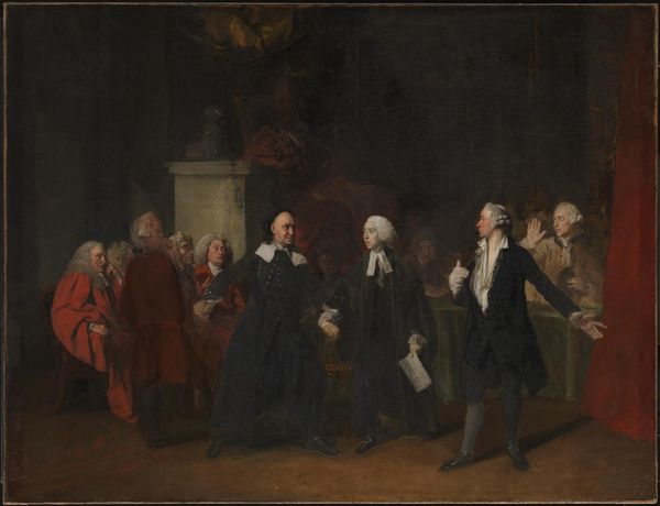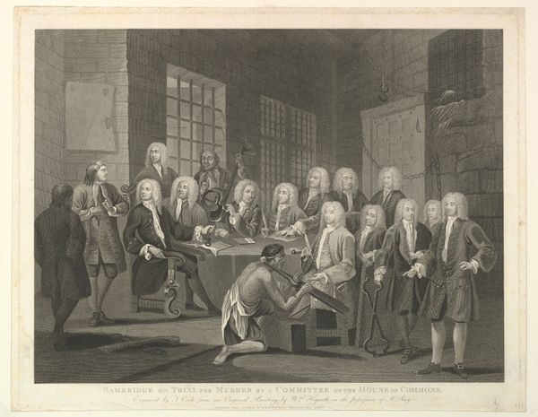 Richard Houston’s print portrays John Glyn, John Wilkes, and John Horne seated around a table. The monochrome palette enhances the structured composition, built upon the geometric forms of the table and the figures’ arrangement. The print’s visual language operates through a system of signs. The table, an ellipse, serves as the central anchor, drawing our eyes to the documents laid upon it. The formal attire of the men, rendered with meticulous detail, signifies their status and roles within 18th-century British society. The background elements, like the framed picture and the folding screen, add depth and context, creating layers of meaning. Houston destabilizes traditional portraiture by emphasizing the group dynamic over individual glorification. This piece functions as more than a mere depiction; it engages with contemporary socio-political discourses. The composition thus becomes a site where power, representation, and interpretation intersect, inviting us to decode the visual and cultural codes embedded within.