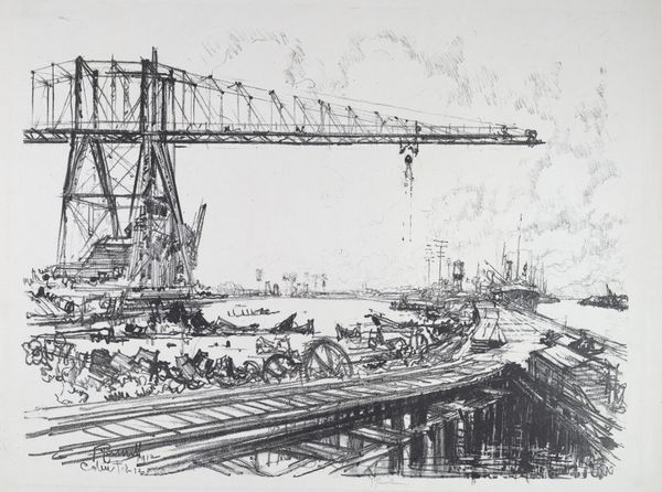 Joseph Pennell made this etching, "Taking the Big Gun Away," sometime between the late 19th and early 20th century. It’s all about the process of mark-making, the density and direction of each line building up the image. Look closely, and you’ll see how Pennell uses the contrast between light and dark to create depth and drama. The texture is built up of tiny hatch marks, giving everything a kind of gritty feel. The sky almost looks like a storm is brewing, mirroring the industrial scene below. It’s amazing how he manages to convey so much with just black and white. The way the cranes loom over everything reminds me a bit of Piranesi, with his architectural fantasies, both artists capture a sense of awe and maybe a little bit of intimidation, at the scale of human endeavor. Art's not about fixed meanings, it’s about opening up a space for feeling and thought.