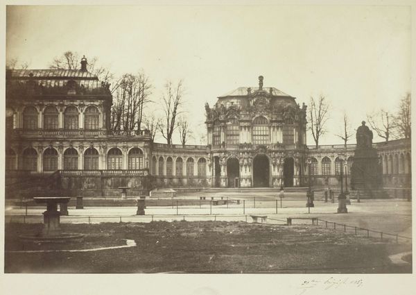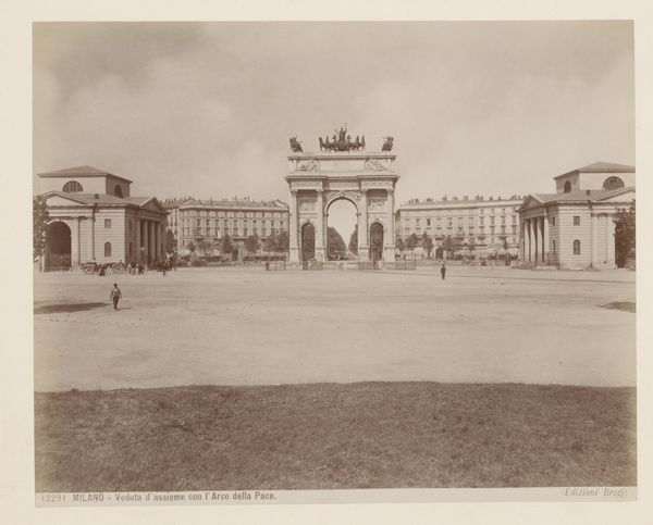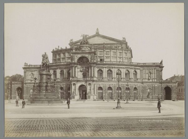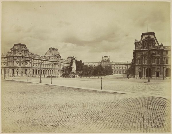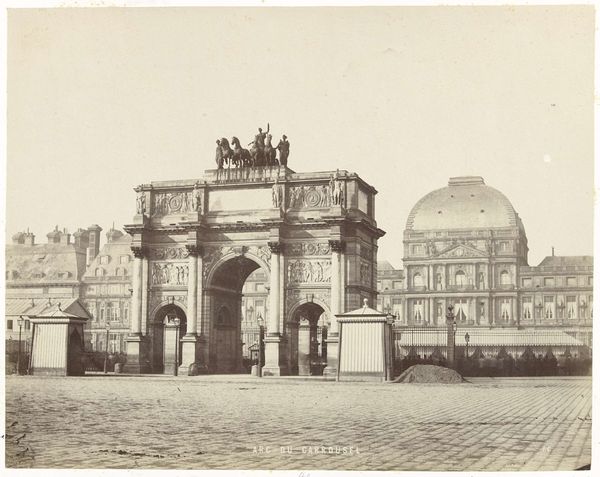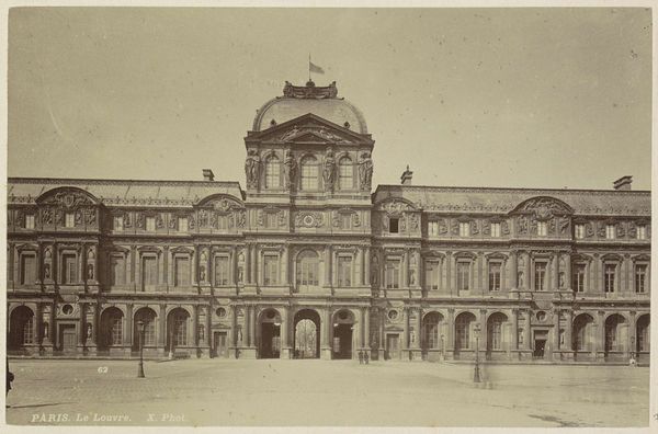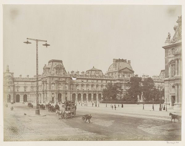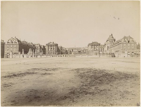 This photograph, titled "Entree van het paleis van Versailles," captures the entrance to the Palace of Versailles in a study of architectural form and space. The photographer, known only as X phot., frames the palace through an ornate gate, creating a layered composition that invites the viewer to consider depth and perspective. The arrangement emphasizes the symmetry and order inherent in classical architecture. Lines converge towards a distant focal point, reinforcing a sense of structured space, a formal quality that serves not only to depict but also to symbolize the power and control associated with Versailles. The neutral tones further highlight the architectural details. The photograph functions as a cultural artifact, reflecting the values of its time while engaging with enduring themes of power, space, and representation.