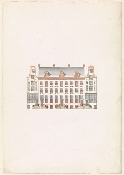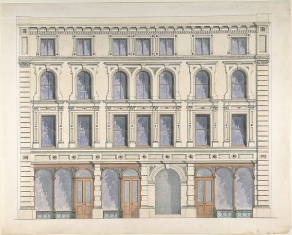 Editor: This is "Endell Street" by David Gentleman. What strikes me is how the architecture is laid out, almost like specimens, with subtle variations in colour and form between buildings. What do you see in this piece? Curator: The linear arrangement and meticulous detail certainly foreground the architectural forms. Note the interplay of line and volume, the modulation of light across surfaces. The materiality, likely ink and watercolour, enhances the precision of the representation. Editor: So, it's more about the shapes and textures than what the buildings represent? Curator: Precisely. Consider the formal relationships between the structures, the repetition of windows, the contrasting heights. These are the elements that construct the visual experience. What have you learned from this experience? Editor: It made me appreciate the simple beauty of everyday architecture. Curator: Indeed, the aesthetic potential is revealed through careful observation.