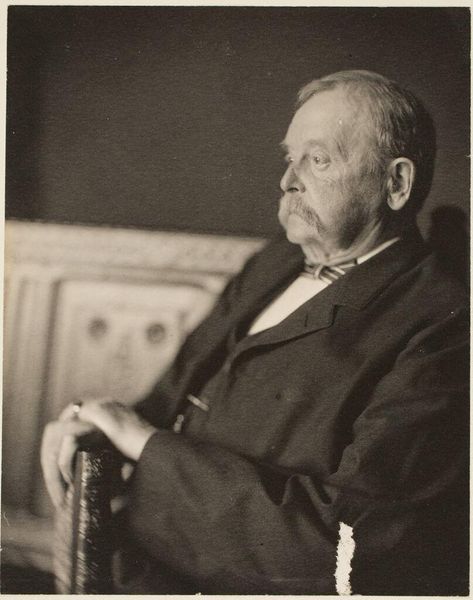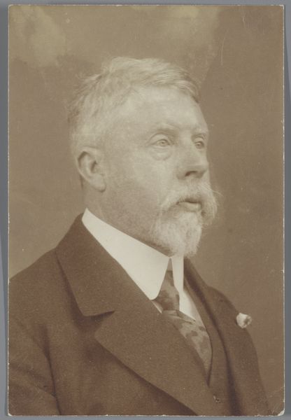 Editor: Here we have "Portrait of August Allebé" a gelatin-silver print, made sometime between 1910 and 1927. It's quite a formal portrait, very serious. I wonder, looking at the processes used to make this photograph, what strikes you the most? Curator: I’m particularly drawn to the gelatin-silver print method itself. Think about the labor involved – the meticulous preparation of the photographic plates, the precise timing of the exposure and development. This wasn't just about capturing an image; it was a chemical process controlled by human hands. Consider also, how the reproducibility inherent in the photographic medium was transforming ideas about art and portraiture at the time. Editor: So, you see value not just in the image, but also in understanding the actual making? Curator: Precisely. This particular method democratized portraiture to a degree. Photography became increasingly accessible, changing the traditional patronage system of painted portraits and perhaps giving people of various classes greater opportunities to be captured in visual media. What can you discern about August Allebé’s class? What’s indicated about wealth or access through the material elements, his suit, the studio portrait, etc.? Editor: Good point! I hadn’t thought of it that way. It highlights the subject’s, Allebé's, participation in that rising middle class and access to cultural tools, but also Koene & Büttinghausen’s studio’s economic status too. Curator: And it prompts us to think about how photography, even in its “artistic” applications, was deeply interwoven with the industrial processes and consumer culture of the early 20th century. What labor goes unacknowledged in our encounter with the image here? Editor: That's given me a completely fresh way to look at it. I now have many more things to consider. Curator: Exactly, considering artmaking from production to the social meaning it produces!