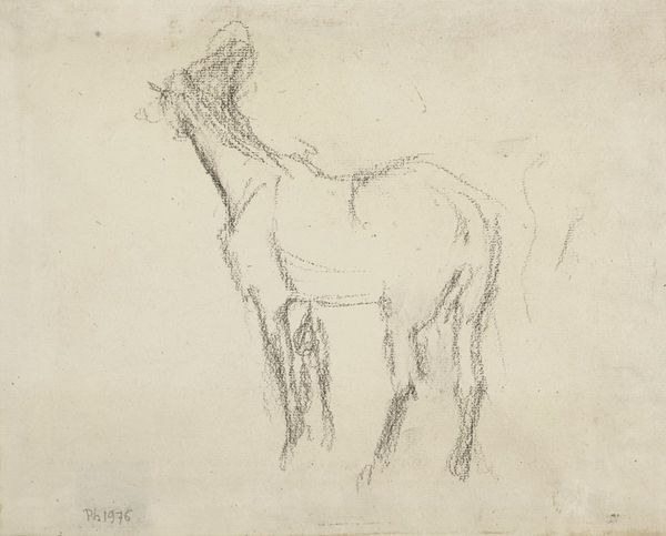 Curator: Before us we have "Horse", a graphite drawing created around 1914 or 1915 by Max Beckmann. Editor: It feels quite melancholic. The animal's posture—head bowed, legs almost hesitant—gives the impression of weariness. Curator: That connects strongly with the era it was created in, just before and during World War One, when themes of fragility and anxiety permeated much of the art world. This simple subject becomes a study in the vulnerability of all living things during such upheaval. Beckmann’s position against German Nationalism caused him great suffering. This is further depicted by the influence of expressionism where artists were concerned with their emotional and psychological state. Editor: You can see that angst even in the lines themselves. They're wiry and restless, constantly moving, never settling into a smooth contour. It speaks to this underlying instability and tension that underscores the work. How much the shading has made the work as well. It creates depth and contrast giving form to the muscles of the horse’s body, creating a weight, a bulkiness, so different than the linear qualities everywhere else. Curator: Beckmann returned from military service disillusioned with the conflict and burdened with PTSD. That disillusionment, as you astutely pointed out, profoundly influenced his artistic style. Editor: It’s also a beautifully raw image. The stark graphite on paper captures an honesty, a sort of unvarnished reality, that transcends the specificity of time and place. Curator: It also challenges traditional artistic notions of portraying nature as idealized or heroic. Here, the horse is shown with imperfections, vulnerability and without pretense. This shift reflects a broader cultural reassessment after the war of established ideals. Editor: Right. And while rooted in a particular historical moment, the rawness that resonates continues to speak volumes today about human experiences. Curator: Indeed, a profound exploration rendered with striking artistic directness, that remains both deeply relevant and enduring. Editor: Agreed, "Horse" is ultimately successful by capturing universal struggles.