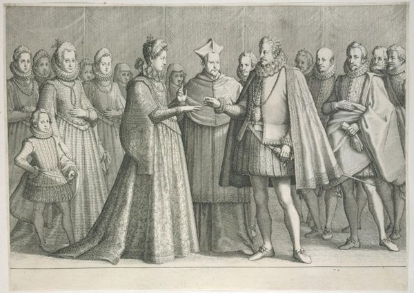 Antonio Tempesta’s engraving shows Philip of Spain kneeling before Margaret of Austria, a scene laden with symbols of power and deference. Philip's kneeling is more than mere courtesy; it’s a powerful statement of hierarchical relationships, a motif echoed across centuries, from ancient supplications to medieval fealty rituals. Consider the gesture of kneeling: it appears in the Codex Calixtinus, where pilgrims kneel before Saint James, or the Renaissance depictions of donors kneeling before the Virgin. In each case, the act carries a potent psychological weight, evoking submission and reverence. This gesture transcends religious and political contexts, tapping into a collective memory of seeking favor or forgiveness. Yet, the symbolism is never static; it ebbs and flows with the tides of history, continually shaped by the subconscious desires and fears of each era. The power dynamic, presented with such precision in this print, has played out over and over again in history.
