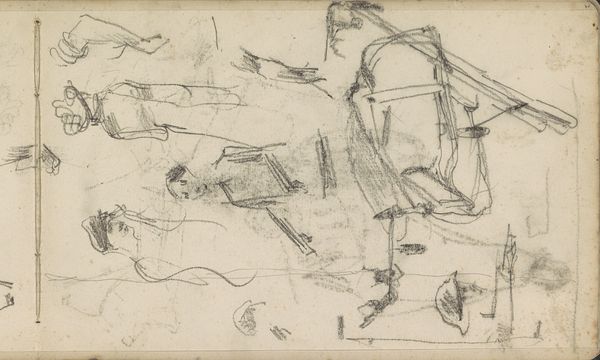 George Hendrik Breitner created this sketch with pencil on paper and it’s now held in the Rijksmuseum. We see a cluster of figures and a cart, subjects Breitner returned to often, recording the working life of Amsterdam. This drawing gives us a glimpse into Breitner's artistic process, typical of the late 19th century, a period marked by rapid urbanization and industrial change. Artists like Breitner were increasingly drawn to portraying everyday life, moving away from traditional academic subjects. Breitner was interested in photography and his sketches were often preparatory work. How did the rise of photography influence the institutional structures of the art world? Did it offer a challenge to the established hierarchy of genres? To fully understand this work, it would be helpful to delve into the archives of the Rijksmuseum, exploring Breitner's other sketches, photographs, and notes. By placing this sketch within its historical and institutional context, we can gain a deeper understanding of its meaning and significance.