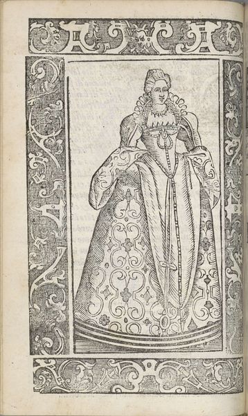 Christoph Krieger’s "Moglie di castellani" is a print, made with an engraving on paper. This technique involves cutting an image into a metal plate, applying ink, and pressing it onto paper, a process demanding precision and skill. The linear quality and the detail of the design, especially in the ornate gown of the figure, showcase the engraver’s mastery. Each line represents a deliberate act, a transfer of artistic vision from the artist’s mind to the physical world. Prints like this one played a crucial role in disseminating images and knowledge during the Renaissance. They were relatively inexpensive to produce, making art accessible to a broader audience. The labor-intensive nature of engraving also reminds us of the skilled artisans who dedicated their lives to this craft. Considering the material and the making, this print bridges the gap between fine art and craft. It highlights the social and economic forces at play in the production and consumption of art.