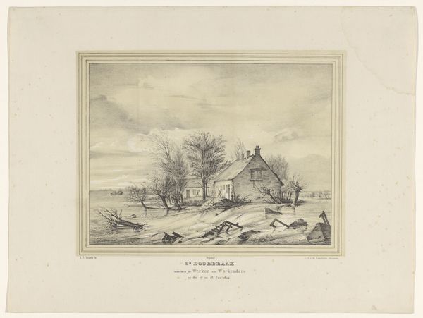 Johannes van Reijn created this winter landscape with figures using watercolor and pencil. The transparent, fluid nature of watercolor, combined with the precision of pencil lines, allows for a detailed yet atmospheric rendering of the scene. Van Reijn masterfully uses the materials to convey the cold, damp feeling of a winter’s day. The delicate washes of color create subtle tonal variations, while the pencil adds definition to the architectural elements and figures. This combination is essential for conveying the texture of the snow, the bareness of the trees, and the humble nature of the buildings. The choice of these materials reflects a broader social context where artists often worked with readily available and relatively inexpensive media. The amount of work involved in this piece is evident in the careful layering and attention to detail, which elevates it from a mere sketch to a poignant depiction of rural life. Ultimately, this piece reminds us that even seemingly simple materials and processes can yield profound artistic expression.