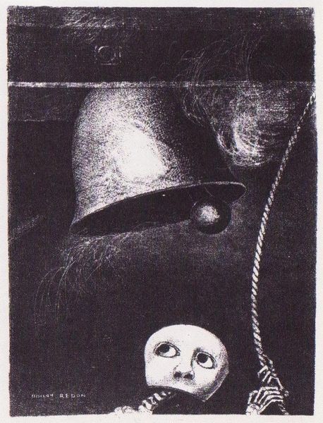 Curator: Stepping into the realm of dreams, we encounter Odilon Redon's charcoal and pastel drawing from 1882, titled "The Breath which Leads All Creatures is also in the Spheres," currently residing at LACMA. What's your first take? Editor: There's an immediate unsettling quality, the stark contrast, the nebulous shapes encroaching upon the human figure… It feels like peering into a very private, and somewhat disturbed, consciousness. Curator: Absolutely. Redon, deeply entrenched in the Symbolist movement, sought to visually articulate the intangible aspects of the human experience—dreams, the subconscious. Notice how the spheres crowd around the figure; these disembodied heads are common motifs, laden with a strange psychological weight that directly references social anxieties regarding industrial advancement at the time. Editor: Right, it seems as though the choice of charcoal really emphasizes that sense of weight. I’m interested in the way Redon manipulates the charcoal; you can really sense his physical involvement. Was the artist aiming to subvert painting's status in favor of the accessibility associated with drawing materials and their direct relationship to labor? Curator: Precisely. Drawing granted him a level of immediacy and freedom, enabling an efficient artistic response to academic constraints. More broadly, Redon challenged institutional assumptions about what was considered worthy subject matter, and his choice of medium and allegorical, somewhat anti-capitalistic motifs certainly reflect that sentiment. Editor: The more I look at this drawing, the more I admire the textural complexity achieved with what appear to be rather simple materials. He makes a political point through abstraction and material modesty; it’s as though the very act of making resists a particular kind of market consumption. Curator: I agree. Redon rejected naturalism, choosing to pursue what he called "the logic of the visible toward the invisible.” "The Breath..." is a poignant example. The dreamlike and spiritual quality that pervades much of his production aligns him with late 19th century debates concerning artistic and religious freedoms. Editor: A provocative exploration of mind and matter, indeed. I keep being drawn back to how those orbs—those looming heads—were rendered to convey such presence through such minimal means, but how else to reflect the intangible in something so corporeal? Curator: And isn’t that exactly Redon’s enduring allure; to create works steeped in symbolism that encourage introspection to such a wide audience.