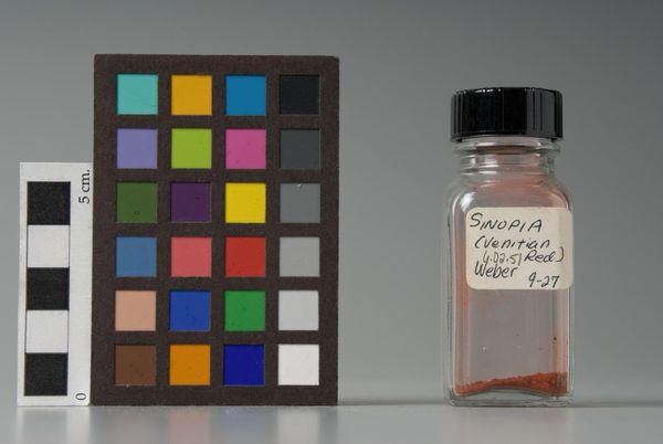 Curator: Here we have "Azurite" manufactured by Hull. What strikes you about it? Editor: The tonality is so soothing, a spectrum of blues suspended in a glass vessel, like a captured sky. Curator: It's fascinating to consider azurite's history as a pigment, and its role in artistic production—reflecting trade routes, scientific advancements, and the changing value placed on color. Editor: Yes, there's a palpable sense of how this form—the pigment—is contingent on its geological source and its transformation through industrial processes. Curator: Indeed, it speaks to materiality and the historical forces that converge to define art. Editor: It's a poignant reminder of art’s evolution.