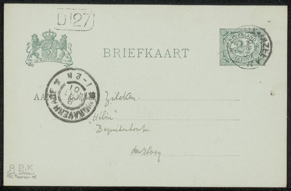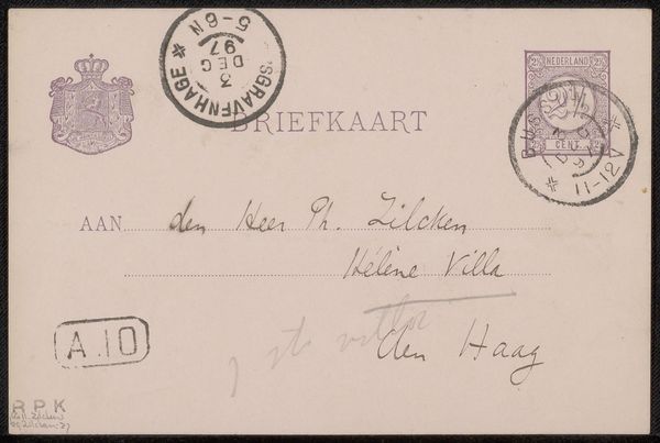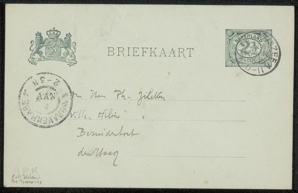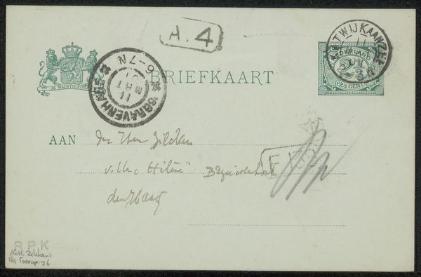 This is a postcard, probably from around 1910, addressed by Jan Toorop to Philip Zilcken. The colors are muted, almost ghostly – the green ink of the stamp and seals faded with time. It reminds me of a painting where the artist lets the underlayers peek through, revealing the history of its making. The smudged postmarks and handwritten address feel so intimate, so human. You can almost feel Toorop's hand pressing the pen to paper. It's like a little performance, a dance between the sender and the recipient, across time. The slightly blurred stamp in the upper right corner, with its intricate design, speaks of bureaucracy and the mundane rituals of communication, while the sender's private message hints at something more personal. There's a kind of beauty in the imperfection of this everyday object. It reminds me of the work of someone like Cy Twombly, who embraced the messy, the accidental, the unscripted mark. Art, like life, is an ongoing conversation, a constant exchange of ideas and feelings.