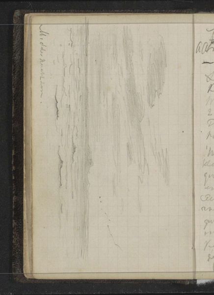 This graphite sketch of a church by a mountain was made by Louis Apol likely in or near Hammerfest. The drawing appears to be a preliminary study in a sketchbook. The linear marks made in graphite create the rough outlines of architectural forms in the landscape. Although rapidly drawn, there's a deliberateness to Apol's marks. The slight variations in pressure and line weight capture the texture and ruggedness of the landscape. The grid visible beneath the sketch also reveals the nature of his craft, and how it may be influenced by mechanical modes of production. The artist is known for winter landscapes, evoking themes of atmosphere and mood. This sketch may have been made on location to reflect a specific time, place, and experience. By considering the context and method, we can expand our understanding and appreciation of even the most simple drawing.
