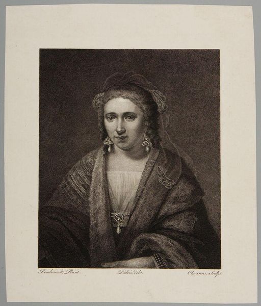 Editor: This is "Spanish Flower Girl" by John Henry Robinson. She seems to be resting, perhaps a bit melancholy. What is your take on this image? Curator: Oh, I find her utterly romantic. It's like a glimpse into a lost world, isn’t it? The way Robinson uses light and shadow reminds me of a reverie, a beautiful fleeting moment captured. Editor: That’s a lovely way to put it. The details in her face and clothing are so delicate. Curator: Indeed! It's as if Robinson wanted to immortalize not just her beauty, but her very spirit. It's more than just a portrait, it’s a poem. Editor: Thanks, I hadn't considered that before. Curator: My pleasure! It's like gazing into a memory.